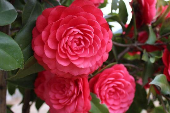 十八學(xué)士山茶花可以說是山茶花圖片中的珍品了,由于其花瓣輪數(shù)細(xì)數(shù)出大多為十八輪,所以稱之為“十八學(xué)士”,由于花形奇特深受人們喜愛。其花色也多樣,常見的是朱紅、緋紅、粉紅等紅色系,花期在1~2月份。