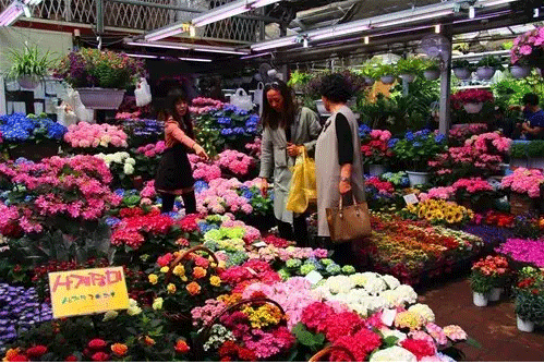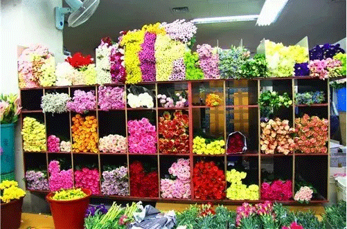 鮮花市場靠近盆花銷售區,面積不大,每天23:00至次日13:00營業,入駐了100家左右商戶。切花以月季、百合、康乃馨、菊花等為主,都使用小格子存放花材,效果美觀。不過韓國最大的鮮切花市場位于漢城高速公路客運站旁。