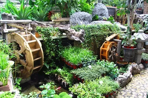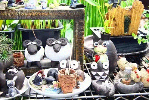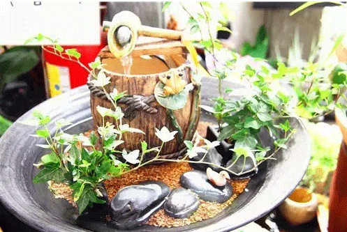 市場內銷售水生植物的攤位制作的小水景