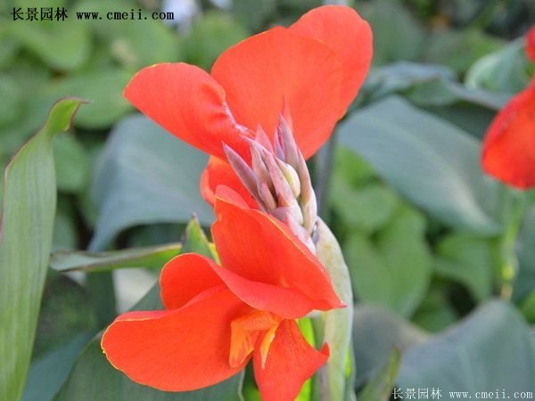 美人蕉,棵型高度0.5~2m高上下,樹葉開花的形態根據種類不一樣有差別,有些很細很長,有些接近橢圓,美人蕉花色調是增加,如大紅,粉紅色,黃綠色,白色等,開花的時間非常長,花量十分大,每年開花時候從6月上旬到8月,花種9~10月才熟,有較好的發芽水平。