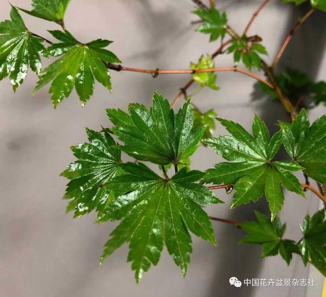 病蟲害:7月的一個(gè)上午,我發(fā)現(xiàn)有幾張葉子的背后長(zhǎng)了一點(diǎn)點(diǎn)黑色的像小芝麻似的油墨點(diǎn)。楓友們告訴我:這就是傳說中的軍配蟲,可以打治紅蜘蛛的藥,噴小紫藥效果也不錯(cuò)。再仔細(xì)看,除了軍配蟲,還長(zhǎng)了紅蜘蛛!原來?xiàng)鳂洳⒉幌矚g這樣悶熱、干燥的環(huán)境。然而楓樹是落葉樹種,葉子長(zhǎng)了蟲害把病葉摘掉或讓它自行枯萎脫落,半個(gè)月后重新發(fā)芽長(zhǎng)新葉,又滿血復(fù)活了(有些“楓子”為了多觀賞一輪美麗的新葉,會(huì)在入秋前把葉子都擼一遍,但這樣會(huì)損耗楓樹的營(yíng)養(yǎng),來年春天長(zhǎng)勢(shì)減弱,尤其是一些長(zhǎng)勢(shì)不是非常好的品種)。所以這些病蟲害都不重要。楓樹的最大敵人是天牛。天牛幼蟲從樹皮一直啃到樹心里面吸取樹汁,嚴(yán)重危害楓樹的存活。陽(yáng)臺(tái)養(yǎng)植也必須多觀察楓樹有沒有受到天牛的危害,未雨綢繆,一旦發(fā)現(xiàn),及時(shí)救治。