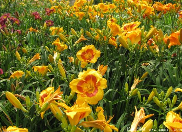 萱草,樹體高0.5~2米高左右,樹葉形狀根據(jù)種類不相同有差異,有一些很細(xì)很長(zhǎng),有一些比較圓,萱草花蕾顏色是增加,如國(guó)旗紅,粉紅色,鵝黃黃,粉白色等,開花的時(shí)間比較長(zhǎng),花量十分大,每年的是開花的季節(jié)時(shí)間段從6月上旬到8月,花種9~10月才熟,有較好的出苗水平。