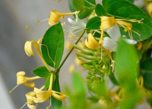 金銀花是忍冬科、忍冬屬的一種植物,是具有匍匐莖的灌木,植株的小枝細長中空,花朵為黃白色,花期4-6月,多生長在山坡灌叢、疏林、亂石堆、村莊籬笆邊這樣的地方。